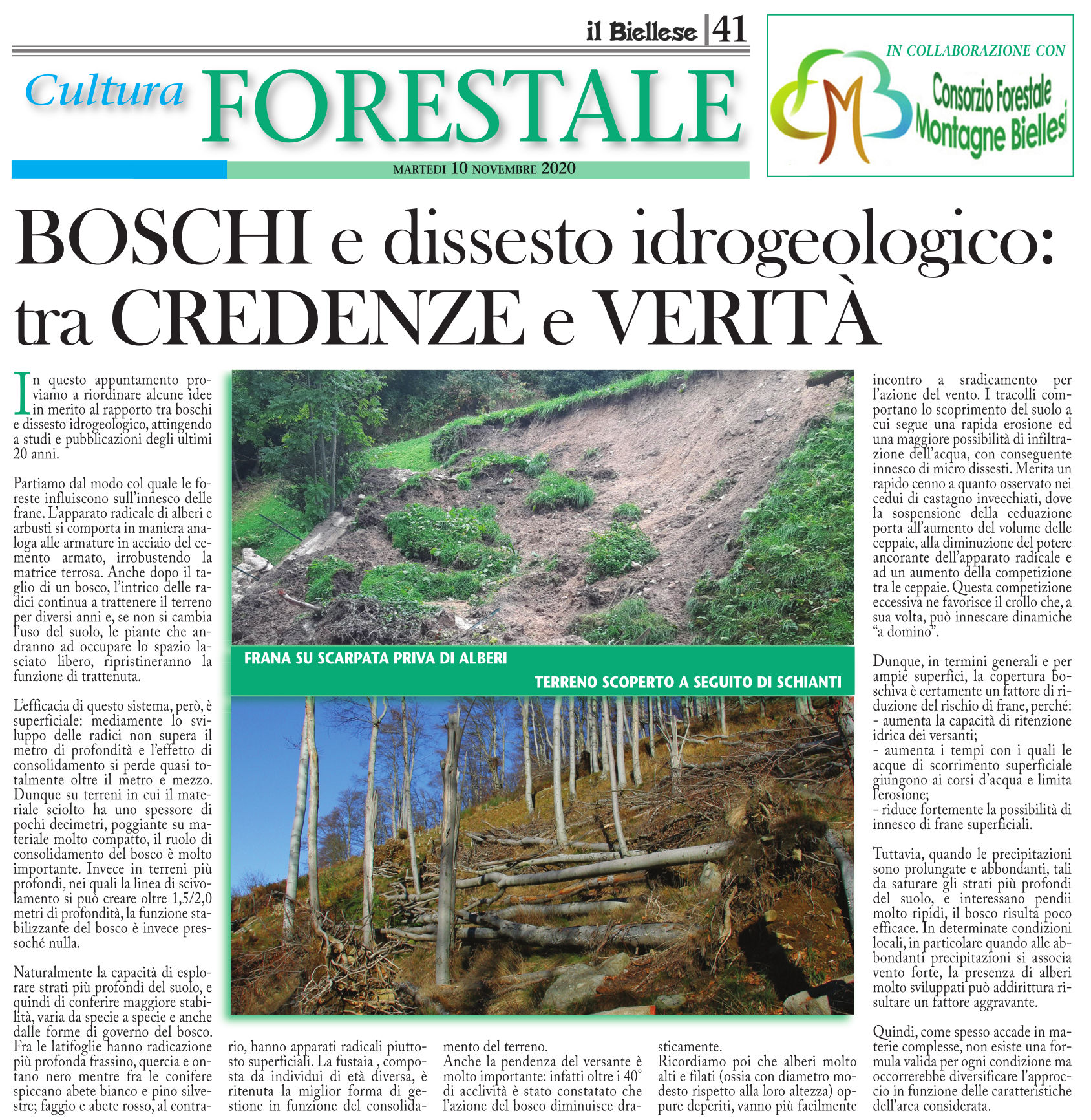 CULTURA FORESTALE n. 36, da "Il Biellese" del 10/11/2020 - Boschi e dissesto idrogeologico